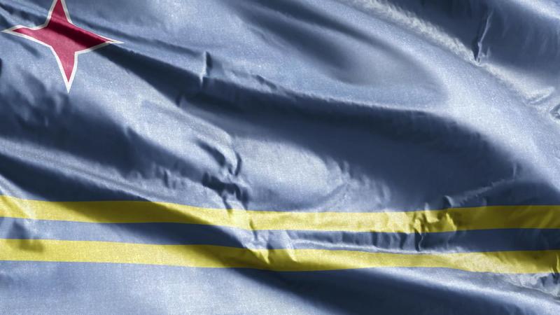 Aruba textile flag waving on the wind loop. Aruba banner swaying on the breeze. Fabric textile tissue. Full filling background. 10 seconds loop. Pro Video