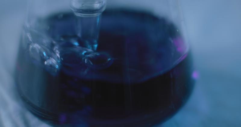 Bubbles coming out of a graduated pipette in a conical flask in a lab. Pro Video
