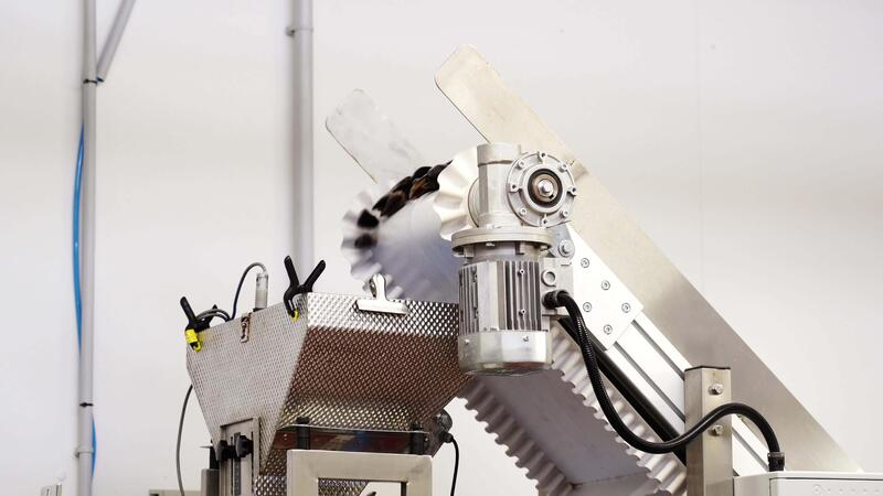 Fresh raw mussels fall down into container from sorting line Pro Video