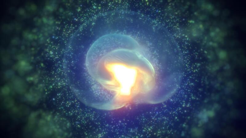 A glowing green nebula sphere with a white core, surrounded by sparkling particles, creating a sense of cosmic energy and mystery background Free Video
