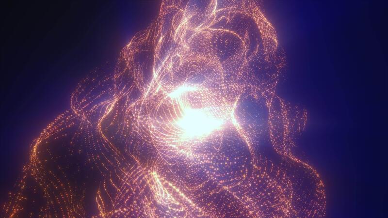 A striking abstract visual of flowing orange and red particles forming a fiery energetic pattern illuminating a dark background with warmth and intensity Pro Video