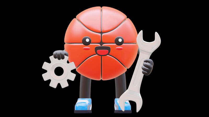3D Basketball Character Holding Wrench And Gear For Maintenance And Technical Support Suitable For Business And Technical Concepts. Transparent Background. Alpha Background. Looping Animation. Free Video