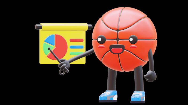 3D Basketball Character Doing Presentation Suitable For Business And Educational Concepts. Transparent Background. Alpha Background. Looping Animation. Free Video