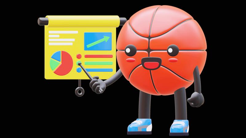 3D Basketball Character Doing Presentation On Growth Chart Suitable For Business And Education Concepts. Transparent Background. Alpha Background. Looping Animation. Free Video
