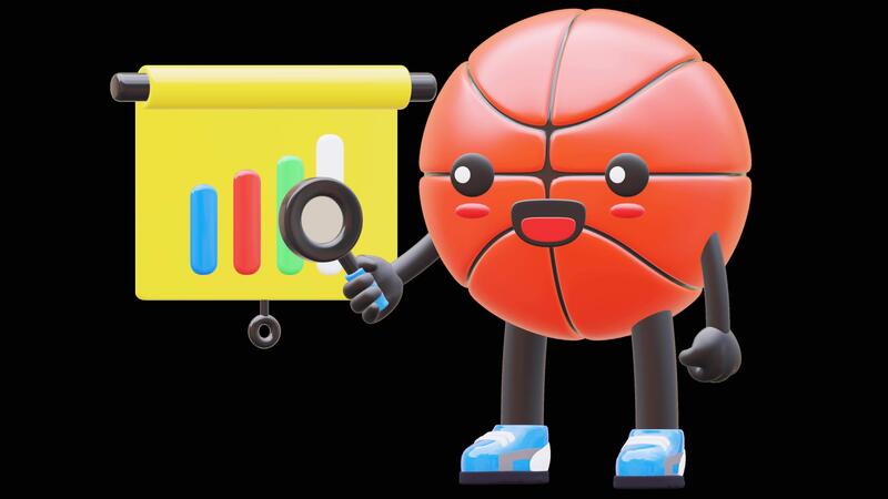 3D Basketball Character Holding Magnifying Glass Pointing At Bar Chart Suitable For Business And Analysis Concepts. Transparent Background. Alpha Background. Looping Animation. Free Video