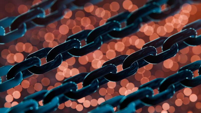 Futuristic Blockchain Concept with Glowing Blue Bokeh and Chain Links Pro Video