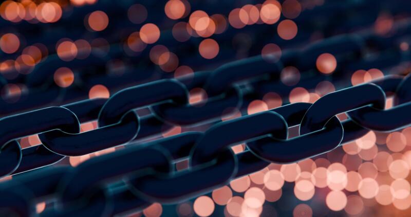 Futuristic Blockchain Concept with Glowing Blue Bokeh and Chain Links Pro Video