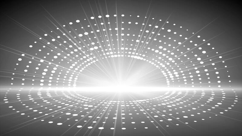 White color rotating glowing optical flair light rays with 3d space and circular dots modern design glowing background Pro Video