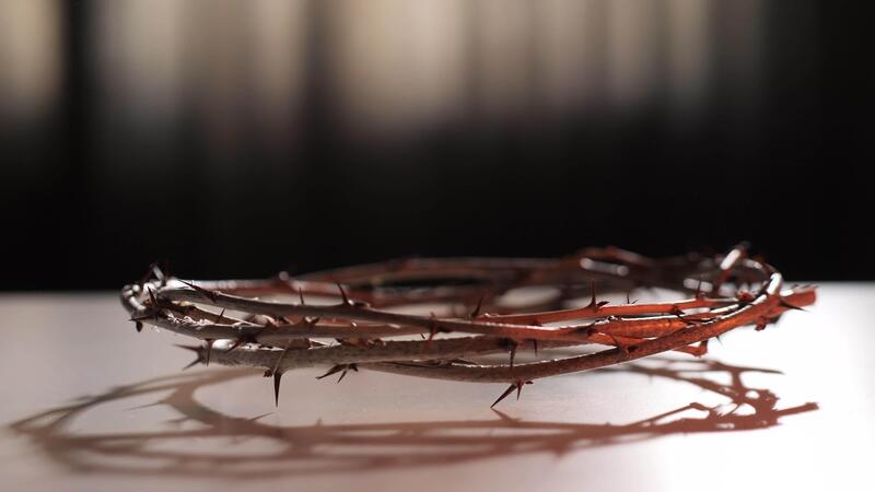 Crown of thorns is casting a shadow on a white surface. Light is coming from the back, creating a gradient from light to dark Pro Video