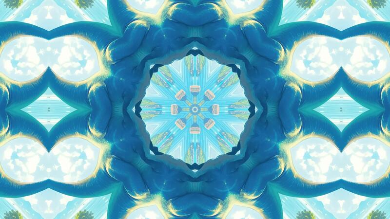 A kaleidoscopic pattern of clouds against a bright blue sky, creating a serene visual effect. Free Video