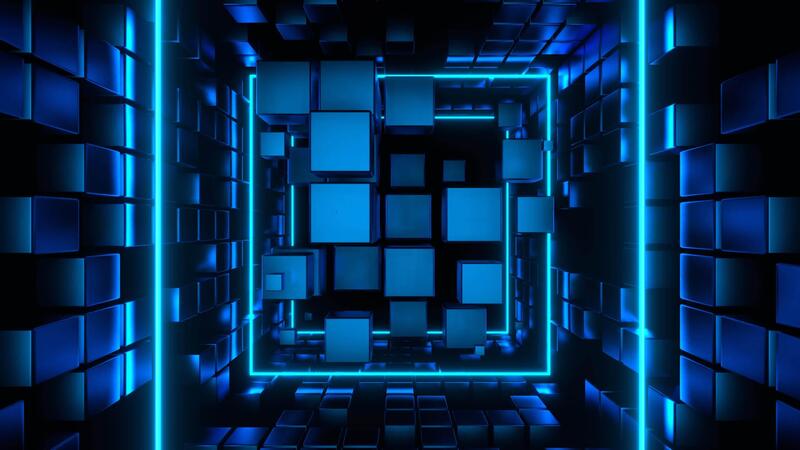Blue Cubic Entity Move Through Tunnel Background VJ Loop in 4K Pro Video