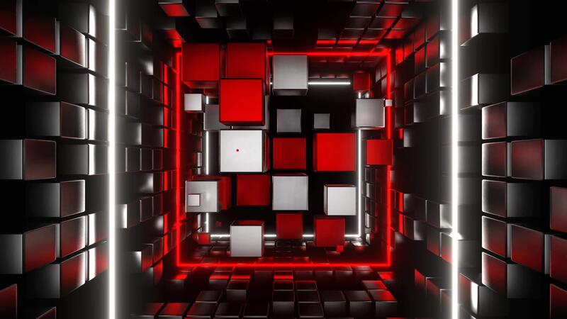 Red and White Cubic Entity Move Through Tunnel Background VJ Loop in 4K Free Video