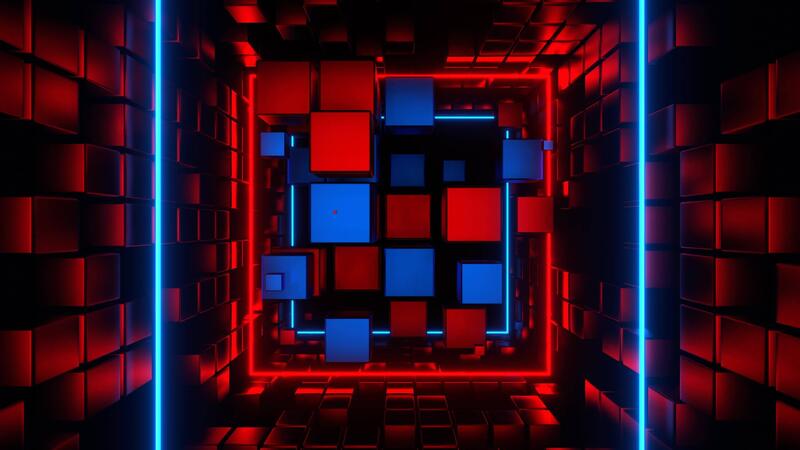 Red and Blue Cubic Entity Move Through Tunnel Background VJ Loop in 4K Pro Video