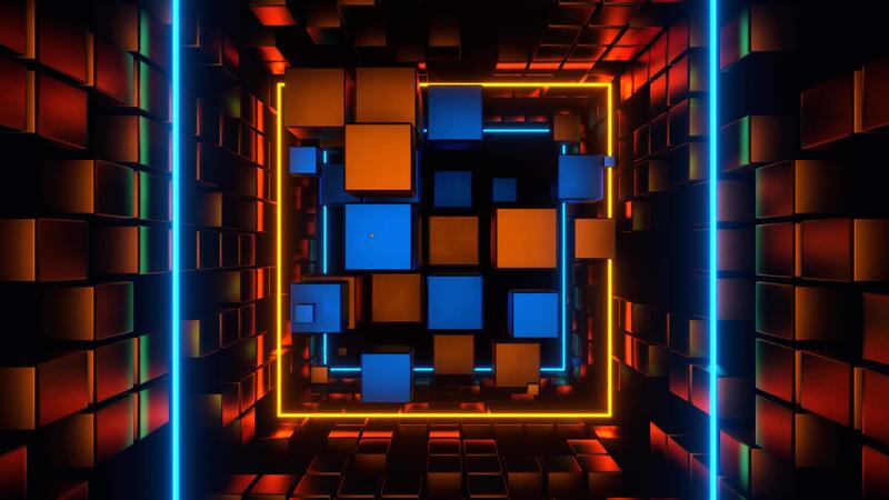 Orange and Blue Cubic Entity Move Through Tunnel Background VJ Loop in 4K Free Video