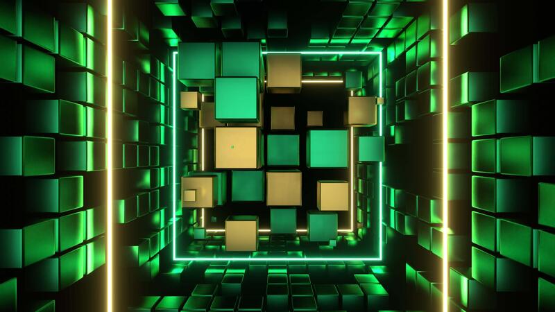 Turquoise and Light Yellow Cubic Entity Move Through Tunnel Background VJ Loop in 4K Free Video