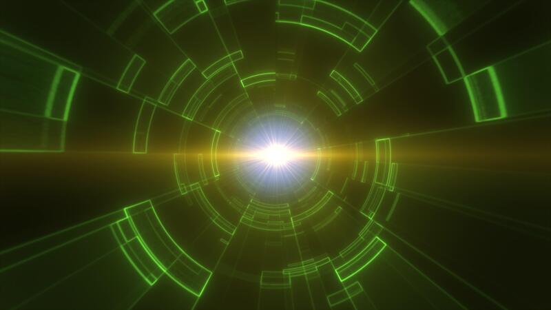 A futuristic, green digital tunnel with concentric circular patterns and glowing lines technology and data flow background Pro Video