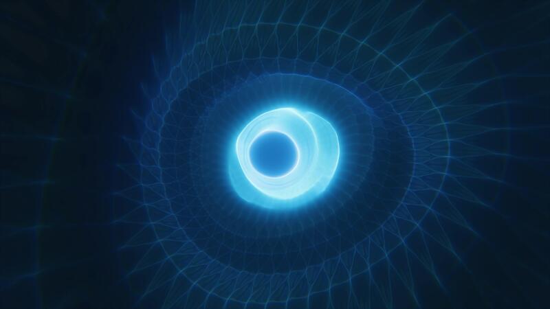 A glowing blue vortex with geometric wireframe patterns converging toward the center, creating a futuristic and digital abstract tunnel tech sci-fi effect Pro Video