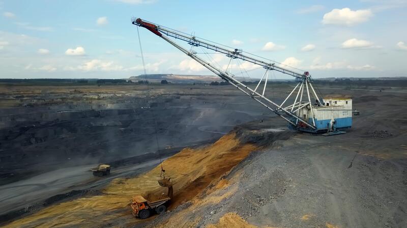 Heavy Machinery Is Actively Operating in An Open Pit Mining Site for Material Extraction. Stock Clip Pro Video