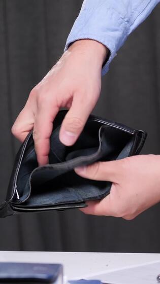vertical Office worker showing empty wallet, struggling with financial problems, having no money, facing bankruptcy, dealing with expenses and debts while managing paperwork Pro Video