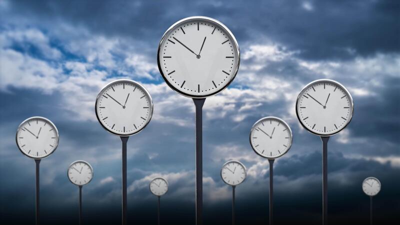Clocks with rotating arrows against sky with heavy clouds Pro Video