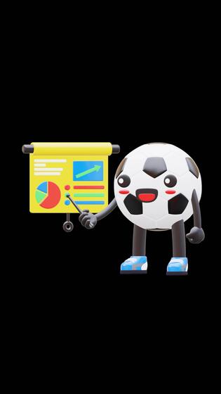 3D Soccer Ball Character Doing Presentation On Growth Chart Suitable For Business And Education Concepts. Transparent Background. Alpha Background. Looping Animation. Free Video