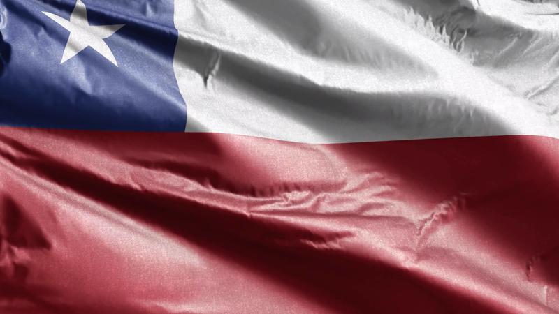 Chile textile flag slow waving on the wind loop. Chilean banner smoothly swaying on the breeze. Fabric textile tissue. Full filling background. 20 seconds loop. Pro Video