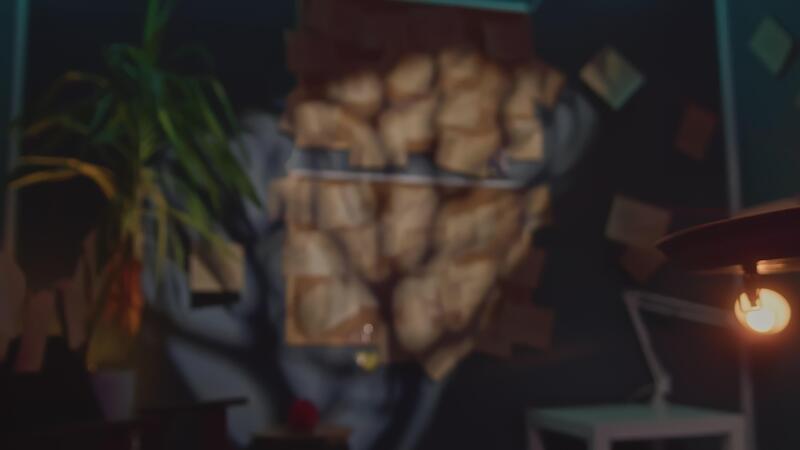 Boards with notes and threads. Stock footage. Boards with mysterious notes and threads. Notes and threads in dark office Pro Video