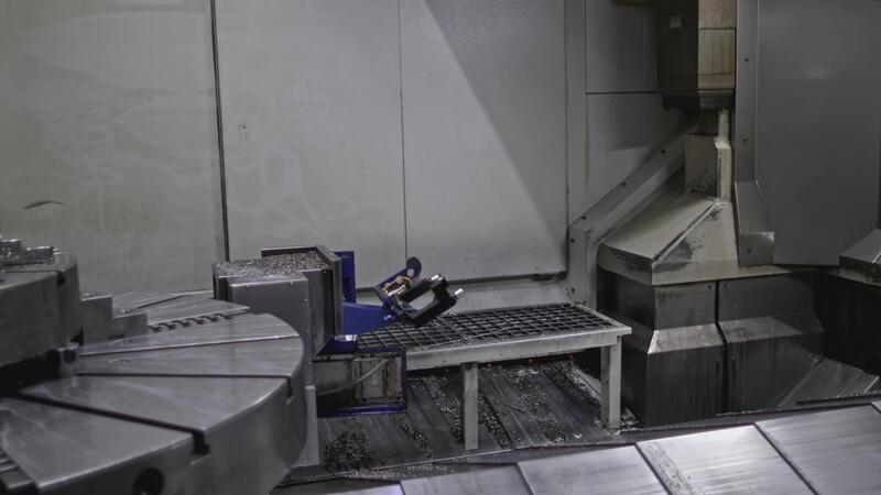 Robotic machine at metalworking enterprise. Stock clip. Robotic parts of metalworking lathe. Automated machinery with metalworking machines Pro Video