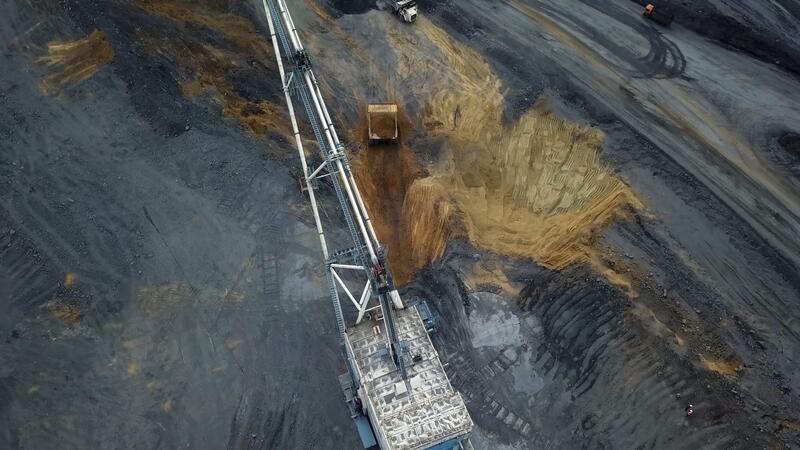Aerial View of Heavy Machinery Being Utilized in a Mining Operation, Showing Activity and Process. Stock Clip Pro Video