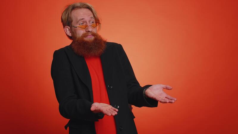 Man raising hands asking what why reason of failure demonstrating disbelief irritation by troubles Pro Video