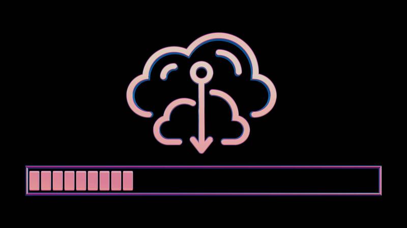 Neon Cloud Computing Icon with Loading Bar on Black Background Pro Video