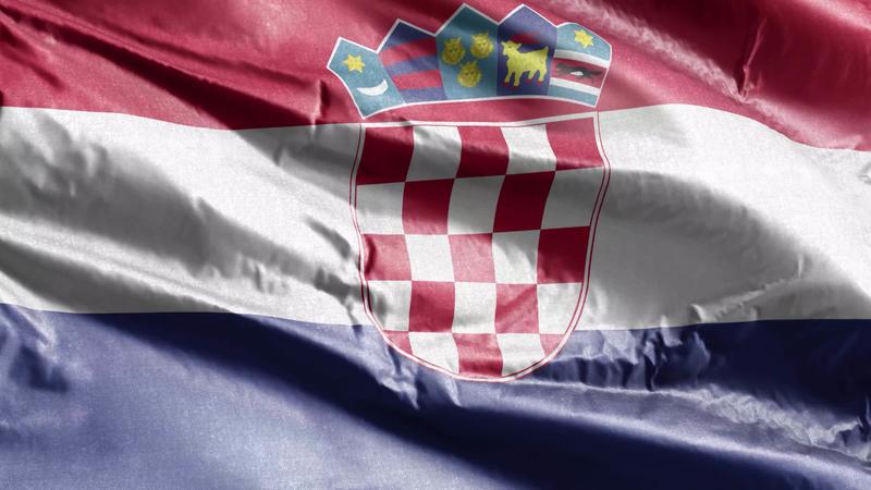 Croatia textile flag waving on the wind loop. Croatian banner swaying on the breeze. Fabric textile tissue. Full filling background. 10 seconds loop. Pro Video