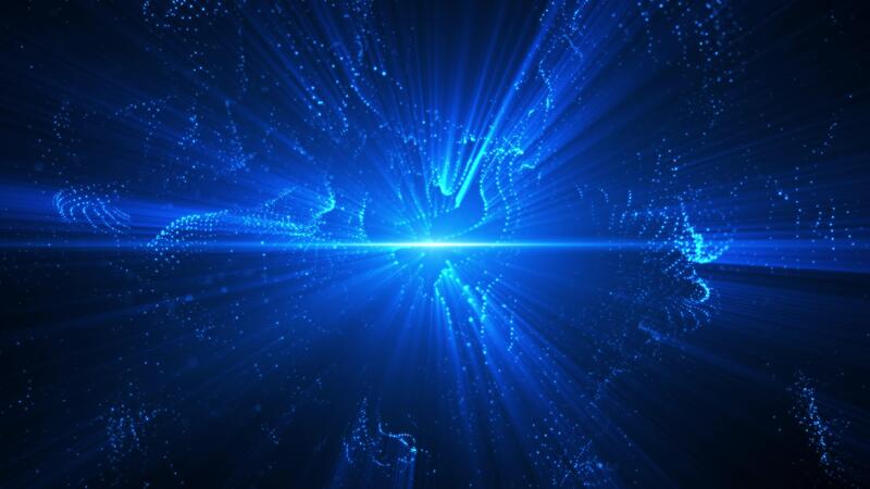 Abstract digital waves emit bright rays of light and swirl with wave energy on a blue background, big data visualization, futuristic and technological, 3D, 4K, seamless loop. Pro Video