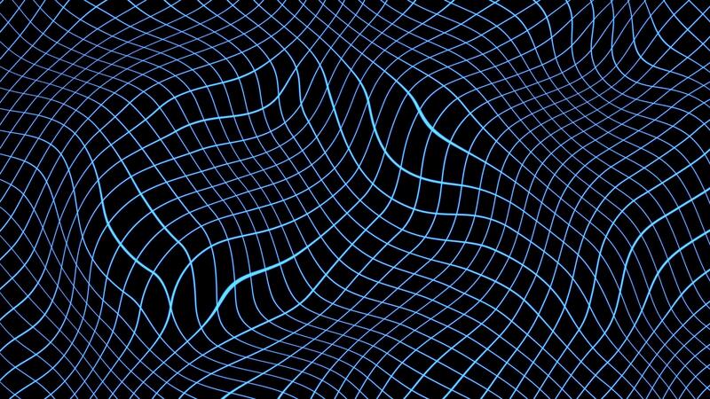 Dynamic, glowing blue grid pattern forming wavy distortions on a black background, creating a futuristic and abstract visual. Free Video