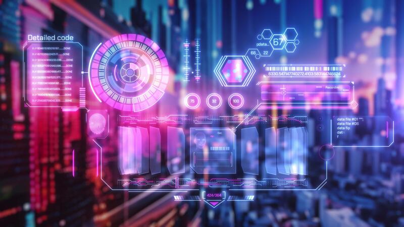 Futuristic HUD displaying data analysis and detailed code Pro Video
