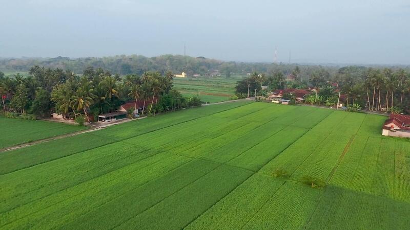 View of green rice fields and several settlements seen from above. Taken using a drone. Free Videos Free Video