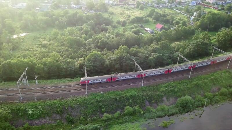 View from the drone on the platform in the suburb and the railway express Pro Video