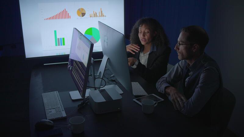 Engaging in Collaborative Data Analysis Within a Dimly Lit Office Environment Setting Pro Video