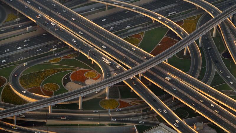 An aerial view showcasing the intricate and complex design of a highway interchange system Pro Video