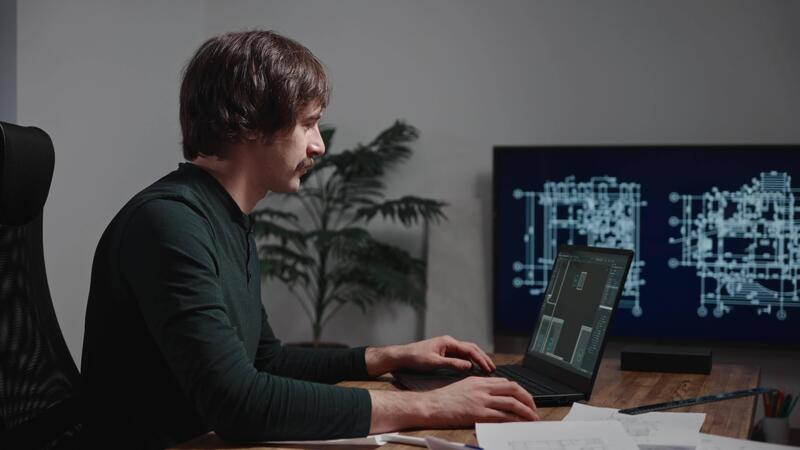 A man is seated at a desk using a laptop computer as an output device Pro Video