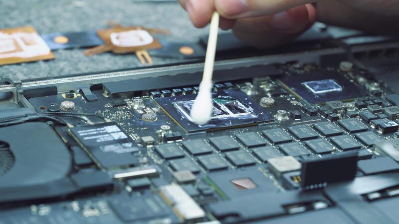 Technician in hardware service cleans the CPU or gpu from the old thermal paste to apply a new one Pro Video