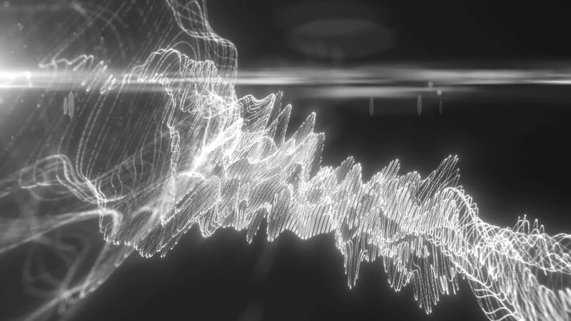 Monochromatic glowing waveforms in white tones on a black background, representing light, sound waves, and data flow in a minimalist style Free Video