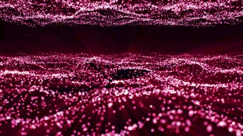 A red abstract glowing energy field of particles from both sides moves towards the camera and the stars above. Background Free Video