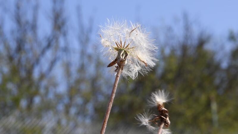 Blowing dandelion clock of white seeds on blurry background. Closeup of fragile white dandelion with fading flower flutter in wind. Season change concept Pro Video