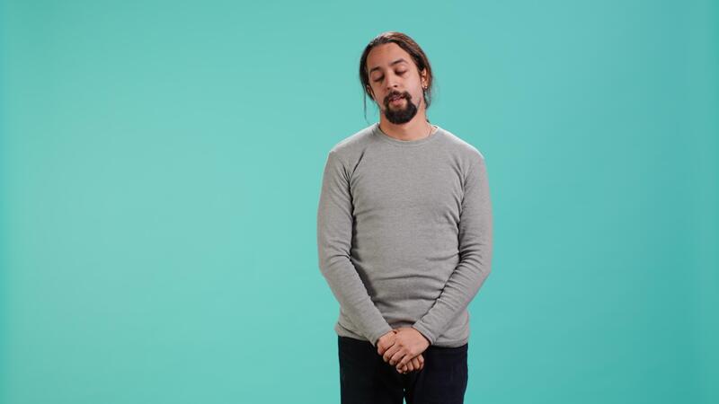 Portrait of bored man lacking enthusiasm to do anything, yawning, wasting time, isolated over studio background. Lazy person living monotonous life, having sleepy dull facial expression, camera A Pro Video