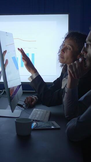 The Business Team is Actively Analyzing Data on a Computer Display for Insights and Strategies Pro Video