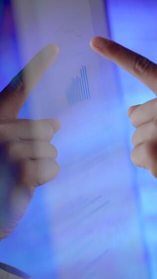 Hands Directing Attention Towards a Financial Chart Displayed on a Digital Screen Surface Pro Video