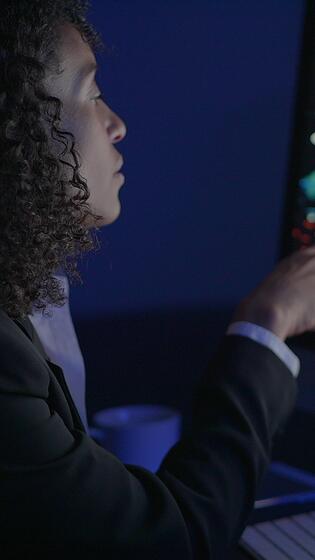 A contemplative professional diligently analyzing various data presented on a computer screen Pro Video