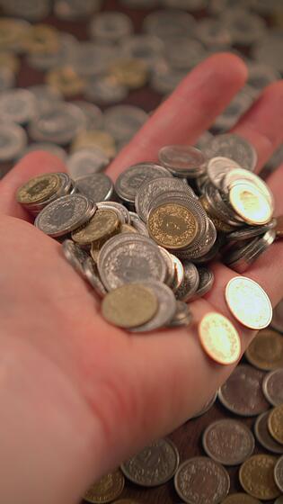A Handful of Coins A Representation of Wealth and Currency in Various Forms and Uses Pro Video