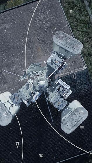 Aerial Perspective Observing a Complex Array of Communication Systems and Equipment Pro Video